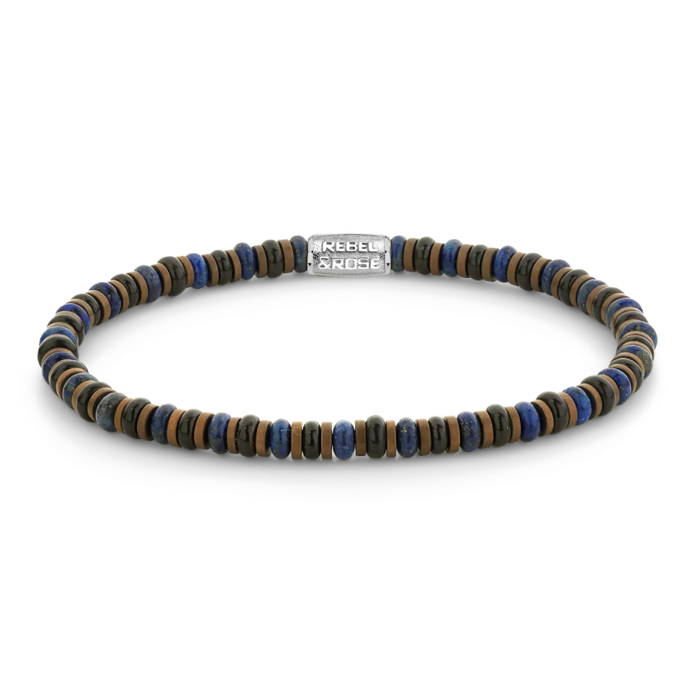 Bead armband, handgemaakt van 4mm stenen (Artificial Lapis Lazulli, Black stone, Hematite) in de vorm van slices / schijfjes. De sluiting is zilverkleurig. De slices armbanden laten zich heel makkelijk combineren met andere zilveren, leren of kralenarmbanden. Omdat in deze armband geen ronde stenen zijn gebruikt, heeft de collectie de veelbetekenende naam ‘No balls please’.