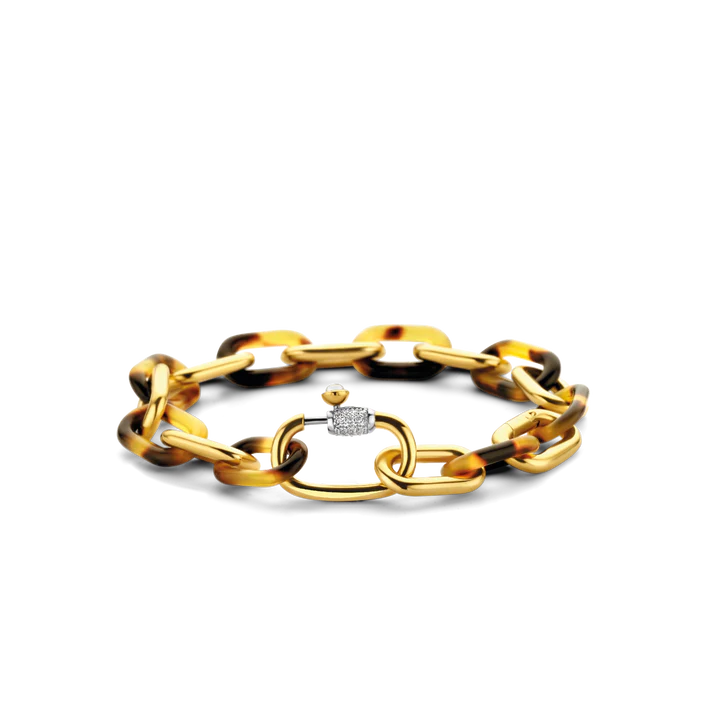 De luipaardprint schakels van deze zilveren TI SENTO armband 2947TU worden bij elkaar gehouden door sterling zilver en goldplated schakels. Dit prachtige stuk heeft dat vleugje vintage extravagantie. Het goldplated veiligheidsslot is op een prachtige manier toegevoegd aan het design en steelt de spotlights met zijn elegante karakte